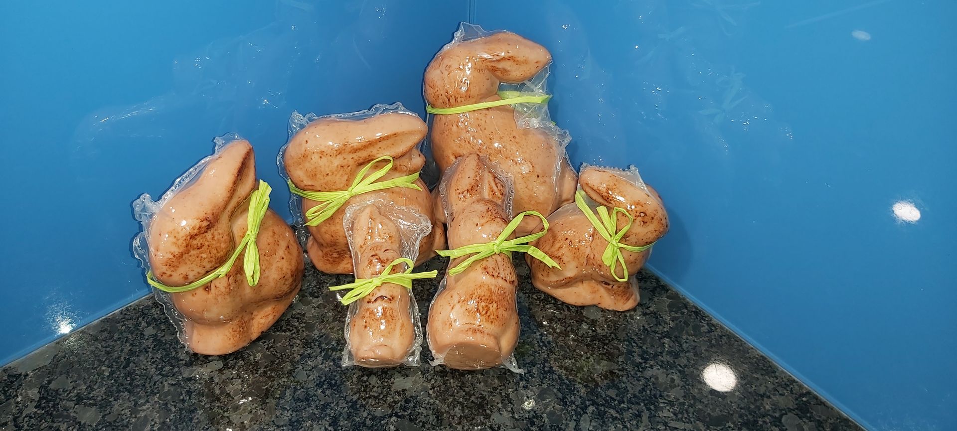 Am Oster-Samstag gibt es von unseren feinen Fleischkäse- und Geflügel-Osterhasen